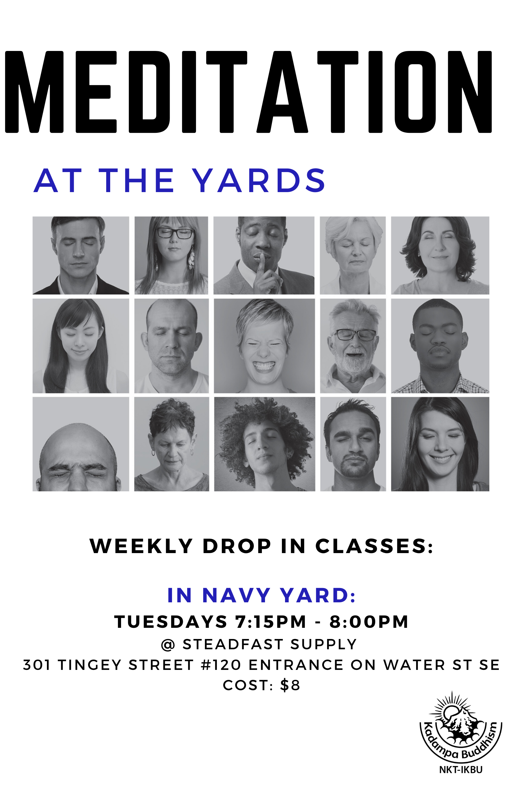 Join us every Tuesday for 45 minutes with Sanema Hardrick of Kadampa Meditation Center in Washington DC for an evening of centered meditation while connecting with self, and community at The Yards.